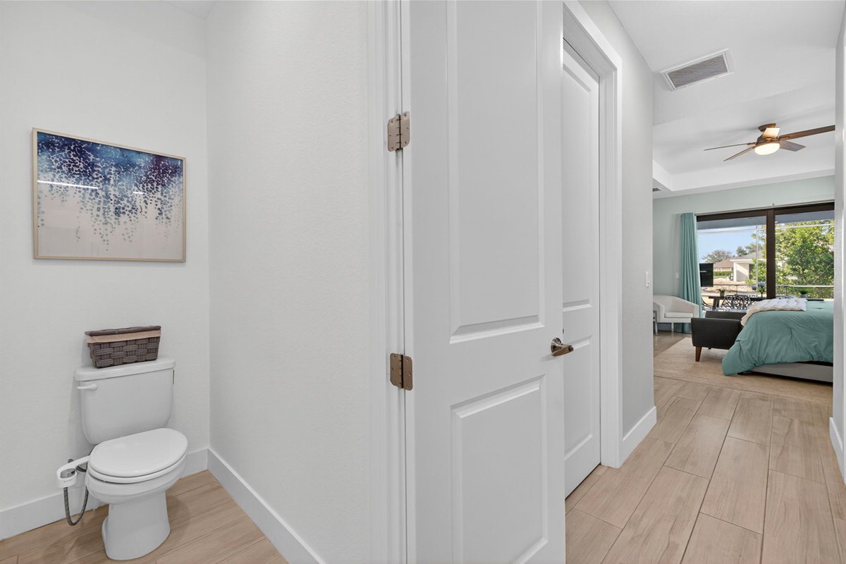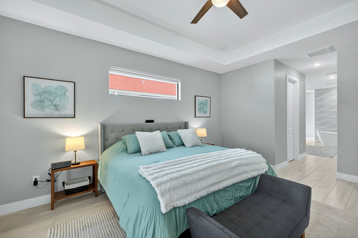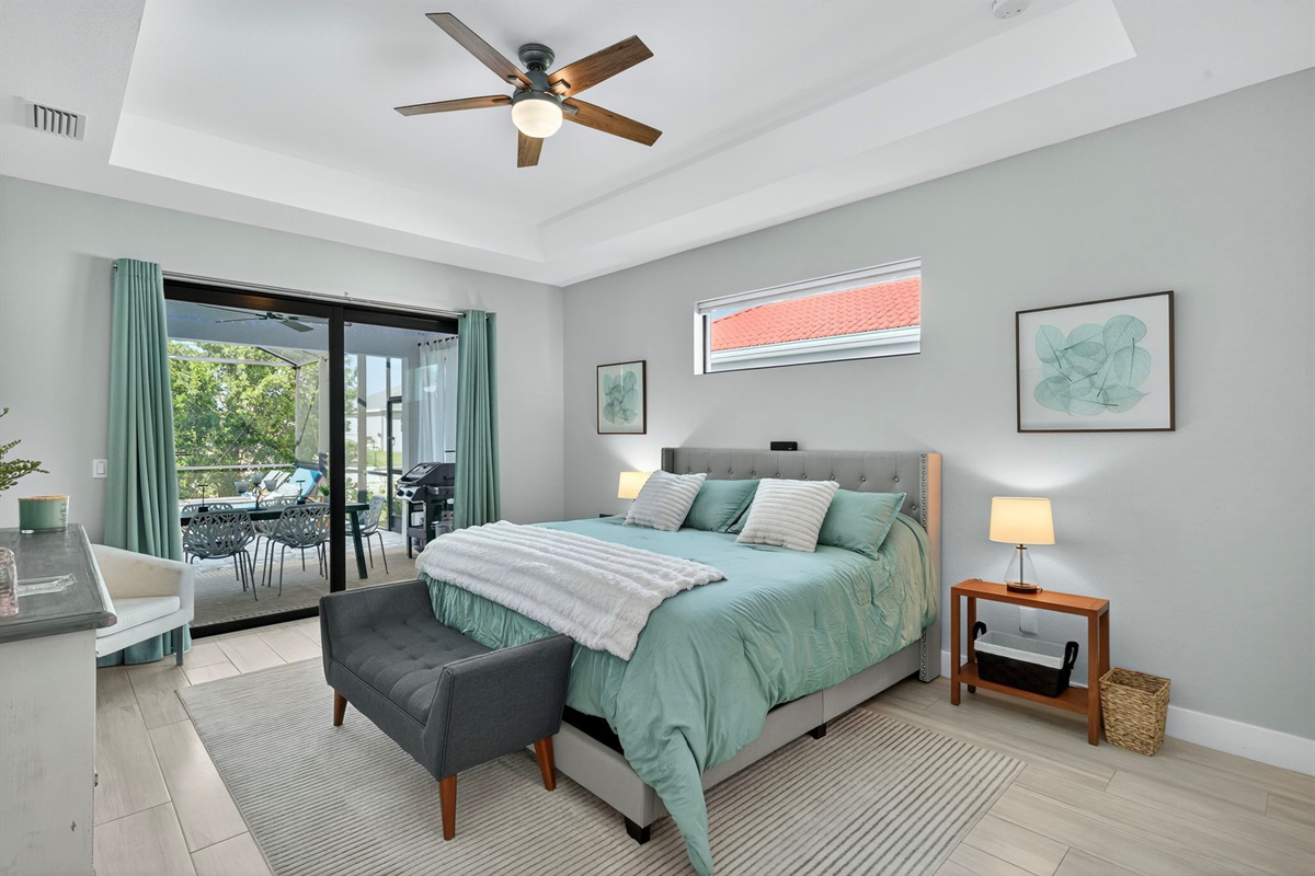 and waterfront. The master bedroom encompasses the entire right side of the home. It has