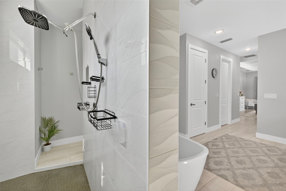 sinks and walk-in shower. The guest bedrooms are on the opposite side of the home for extra